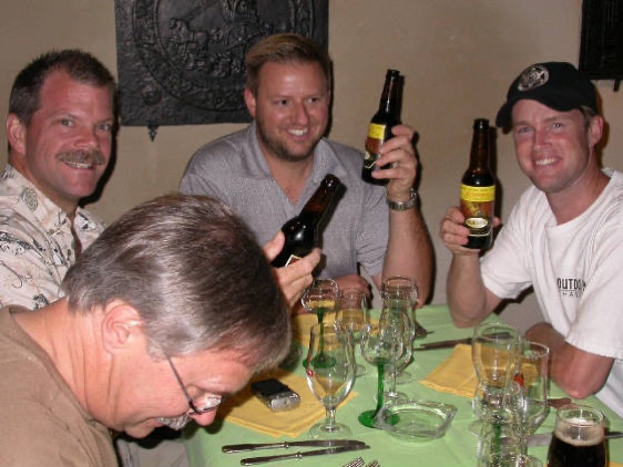 From the US: Dave, Greg, Mike and Robert Ward enjoying the Famous FARMER beer w. real meteorite...